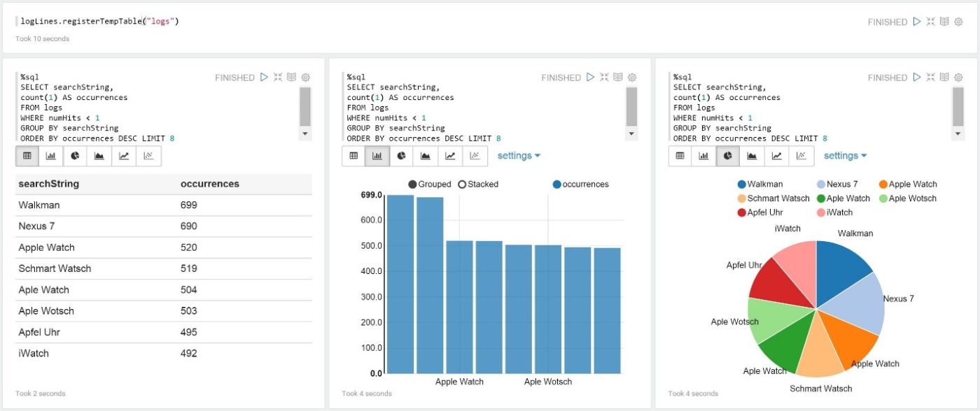 Speziell in Spark fällt das Programm in der Regel sehr kompakt aus, so dass es sich gut als Notebook-Report dokumentieren lässt und somit leicht zu teilen und für spätere Anpassungen gut nachvollziehbar bleibt.