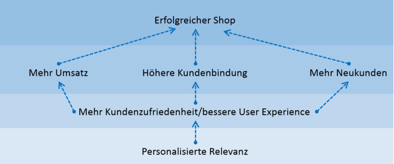 Personalisierte Relevanz ist ein Fuß, auf dem die Kundenzufriedenheit steht. Dies macht sich in Ihren gesteigerten Umsätzen bemerkbar. Ihre Kunden binden Sie so langfristig und zusätzlich steigern Sie die Zahl der Neukunden.