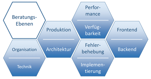 In unseren Best Practises führen wir Sie auch mit Hilfe dieser Methodik vom Ist-Zustand zu Ihren Zielen und betrachten dabei Technologie- und Businessaspekte. Budgetvorgaben und Stufenpläne stimmen wir gemeinsam ab und richten Sie an Ihren Erwartungen und Gegebenheiten aus. So gelangen wir zusammen zu den gewünschten Projektergebnissen ohne Zeitverzug und Kostenüberschreitung.